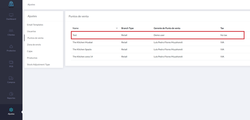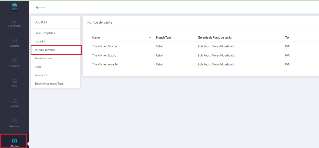 2) Nos iremos a la sección de ajustes y al apartado de «Puntos de venta».