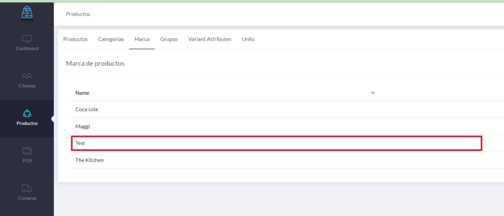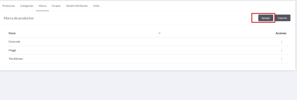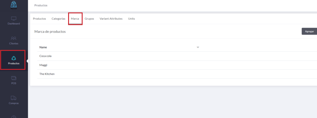 1) Para esto primero debemos ir sección producto y presionar en el apartado «Marca».