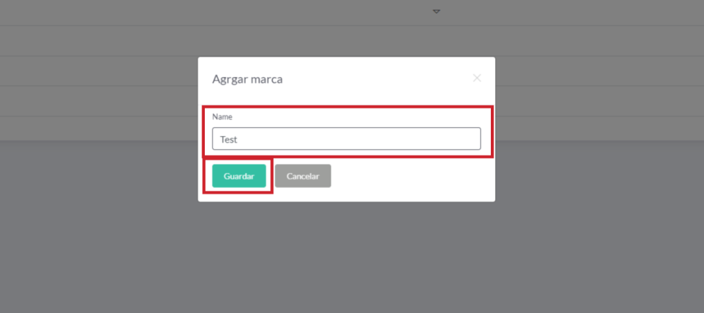 3) Nos saldrá un formulario para ingresar la marca, demos llenarlo y darle en guardar.