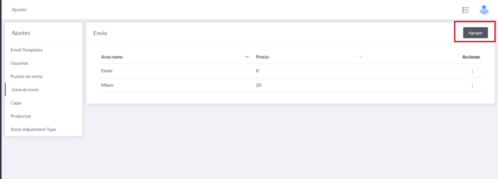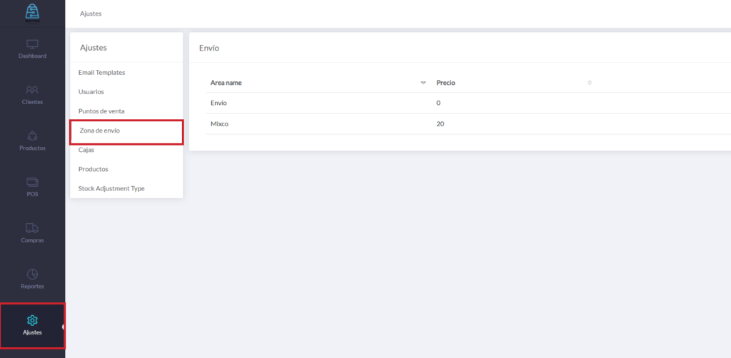2) Nos iremos a la sección de ajustes y al apartado de «Zona de envío».