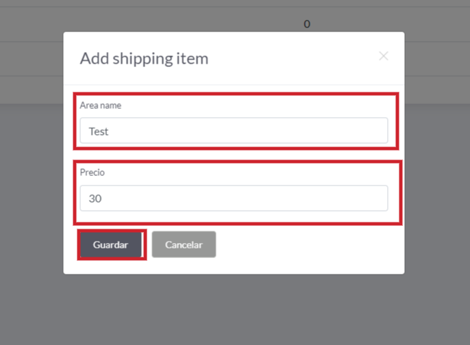 4) Se nos abrirá el formulario de ingreso, llenaremos los datos correspondientes y podremos el precio de envío, luego le daremos al botón «Guardar».