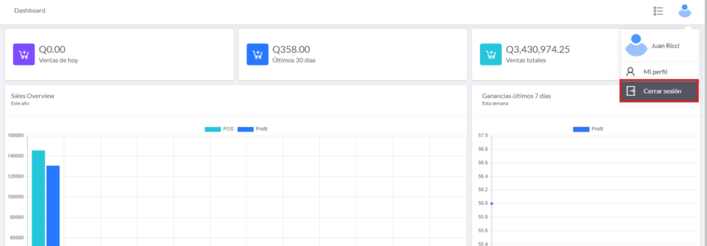 2) Se nos desplegará un menú y basta con darle a cerrar sesión.