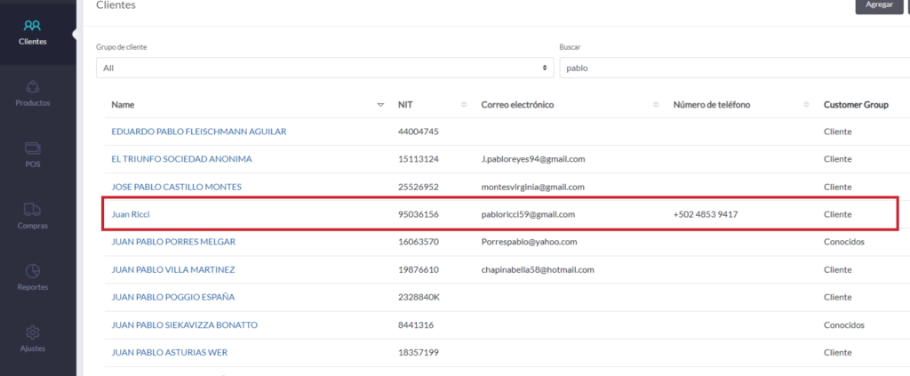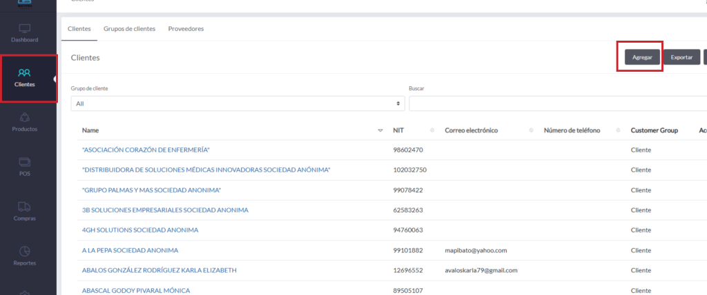 1) Primero deberemos irnos a la sección de clientes y presionar agregar.