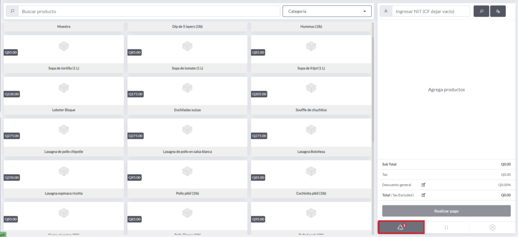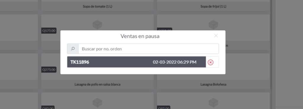 1) En la sección POS haremos clic en el botón de pausa mientras tengamos artículos en la venta actual.