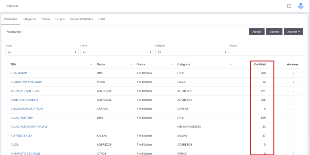 2) En la columna cantidad podremos ver la cantidad de unidades que tenemos de este producto.